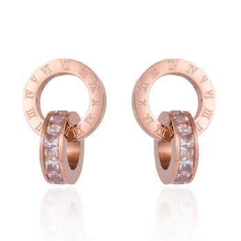 Roman Numeral Hollow Titanium Steel Earrings for Women Zircon Double Ring Buckle Elegant Simple Earrings