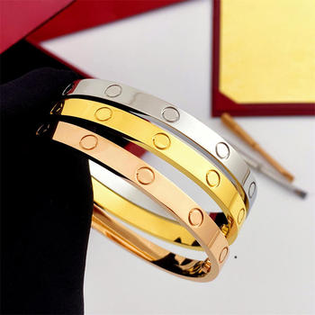 Fashion Love Jewelry 18K Gold Plated Stainless Steel 4 Diamond Bangles Bracelet for Men Women Jewelry With Screw